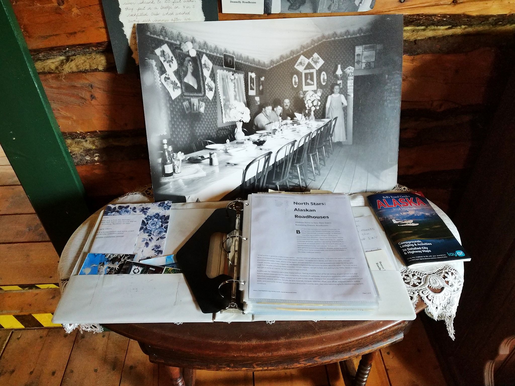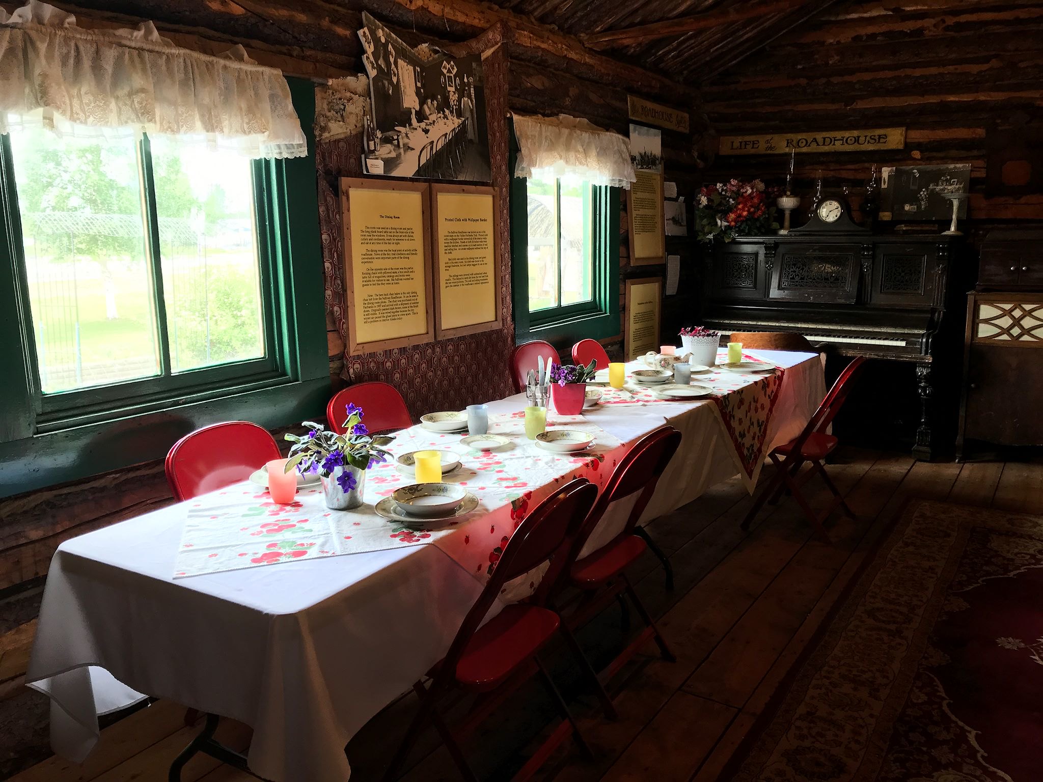 Delta Junction (pop 900) is a small, remote town. The hoppingest place in town while we were there was the ice cream shop. Second place goes to the gas station, the only one for more than 100 miles in any direction! Located on the original stage road from Valdez (shipping port) to Fairbanks (gold mines) in the early 1900s, Delta Junction served as an important crossroads. The Sullivan Roadhouse, the oldest and most elegant of it’s kind, operated 1907-1922, serving the travelers of the day. It’s now a museum, showcasing the photography and writings of James Theodore Geoghegan – a British hired hand of the Sullivans’ who eventually became a roadhouse owner, himself.