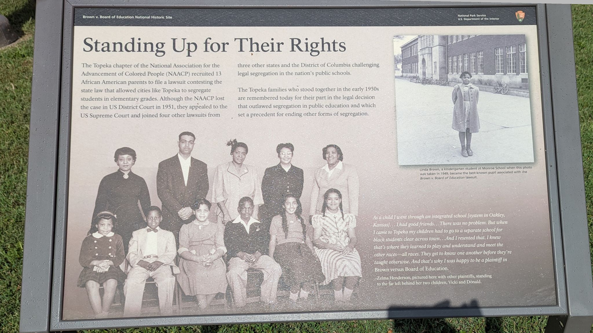 In May 1954 the United States Supreme Court ruling on Brown v. Board of Education of Topeka upended the “separate but equal” doctrine of Plessy v. Ferguson and banned school segregation. Monroe Elementary School in Topeka, KS, where Linda Brown was a student (and whose father, Oliver, was the lead plaintiff in the consolidated class-action case), was purchased by a non-profit organization in 1990 and designated a National Historic Landmark. Over the next couple of years the property was conveyed to the National Park Service and opened as a museum and visitor center called the Brown v. Board of Education National Historic Site. In 2022, President Biden signed the Brown v. Board of Education National Historical Park Expansion and Redesignation Act, which “upgraded” the Brown v. Board center in Topeka from a historic site to a historical park and expanded the park to include sites related to the four other cases consolidated before the Supreme Court under Brown v. Board of Education of Topeka.